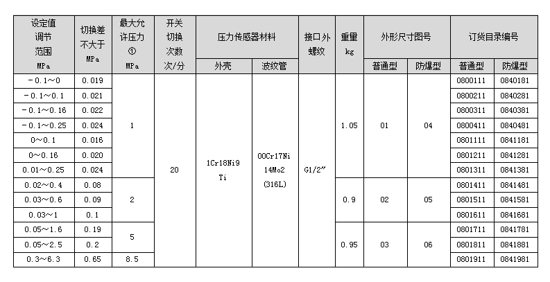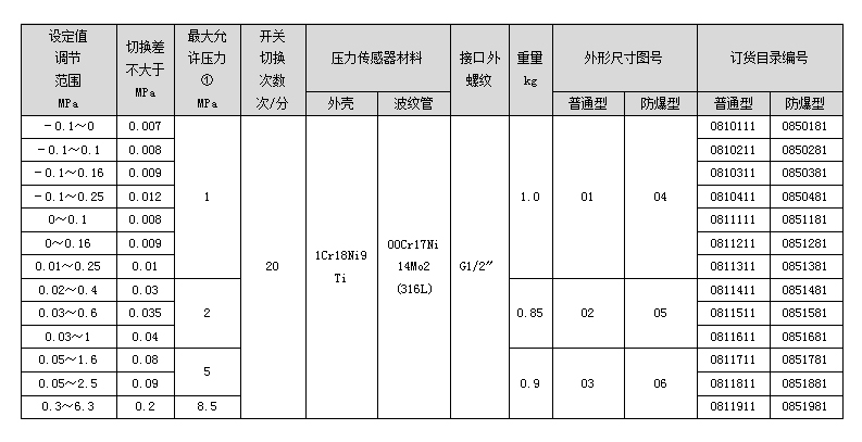控制器采用波纹管式传感器。可用于腐蚀性气体和液体介质。控制器的设定值可调,调节范围-0.1……6.3Mpa。